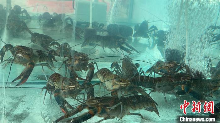 9月7日,记者来到位于新疆喀什麦盖提县的澳洲淡水龙虾衍生基地,图为衍生的澳洲淡水龙虾。中新社记者 朱贺 摄